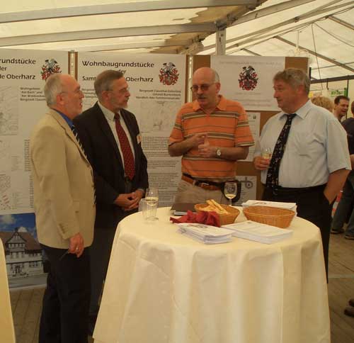 Die Gruppe (Wolfgang Lampe, Prof. Balck, Thomas Gundermann (v.r.), Frau Jäger und Wilhelm Marbach (4.u.5.v.l.) hat den Stand der Bergstadt Clausthal-Zellerfeld im Niedersächsischen Landtag zur Ausstellung "Geschichte verbindet - Landesgeschichte in Stadtgeschichte" entworfen und aufgebaut. Auf dem Bild auch Sponsor Dr. Burchards (4.v.r.) und (v.l.) Helmut Radday (Oberharzer Geschichts- und Museumsverein) und Dorothee Austen (Bürgermeistergattin) mit mir. Auf der Plakatleiste im Hintergrund auch Sponsor Dr. Röthele, Sympatec).